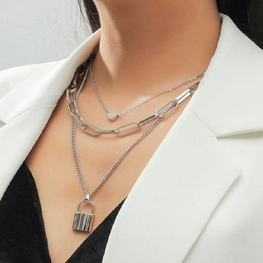 CLEARANCE SALE - Jewelry Set Combo – Silver Plated Heart Lock Necklace & Hug Couple Pendant